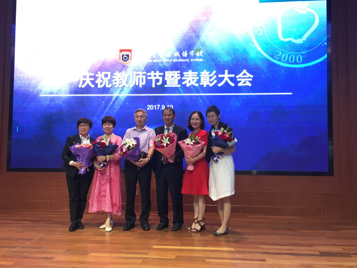 各学部、部门领导及获奖教师代表分别上台,发表获奖感言,献上教师节祝词,表达了对学校发展的坚定信心与美好憧憬,相信金苹果在张文荣董事长的带领下,明天一定会更加灿烂,大家齐努力,建金苹果伟业,一张蓝图干到底。