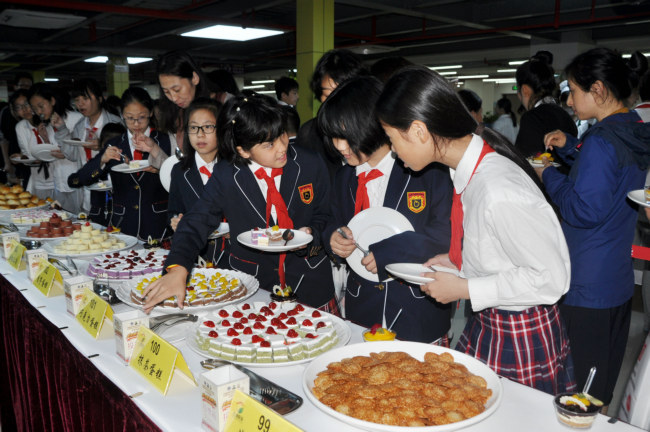 邀请到场的家长、老师、学生开始围绕精心准备的美食品尝。