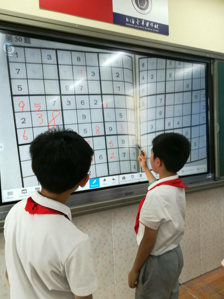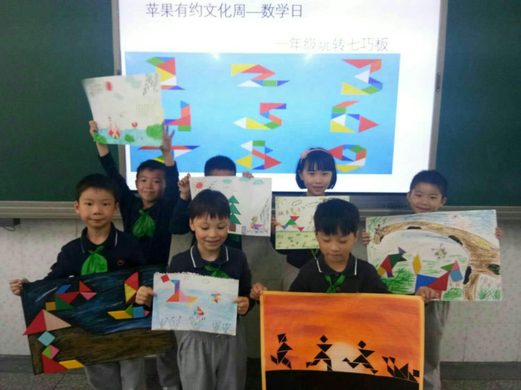 苹果数学日——“智慧果园,最强大脑! Wise and strong!”金苹果小学部“苹果有约”首届文化周数学日活动丰富多彩,一年级有七巧板游戏;二年级有智力魔珠;三年级有巧拆九连环;四年级有巧算24点和魔方;五年级有数独游戏和魔方。