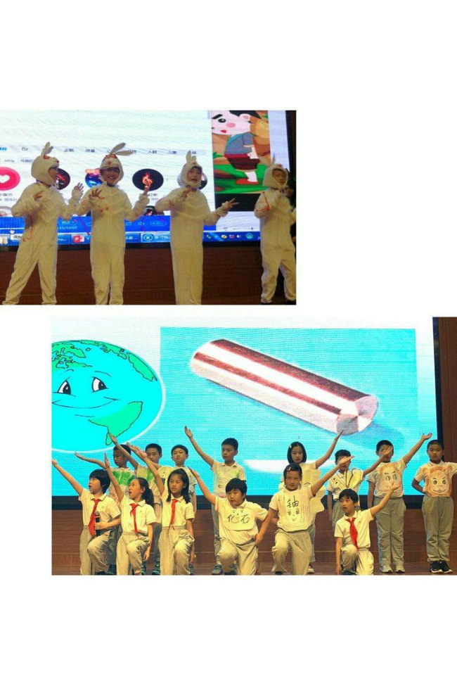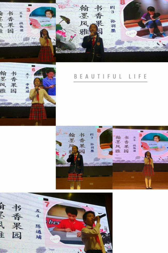 一年级的小果果们给大家带来了有趣的情境故事,纷纷大显身手、自信满满。二年级果果们带领我们共同诵读经典,感受传统文化魅力。三年级的果果们为我们从历史、寓言、环保等多主题的课文剧去感知文章的魅力,呈现课文的“趣”与“美”。四、五年级的果果们用演讲的方式分享了了每个人与书的故事,与文章对话;与博览同行,开拓视野,去享受读书、学习的快乐。