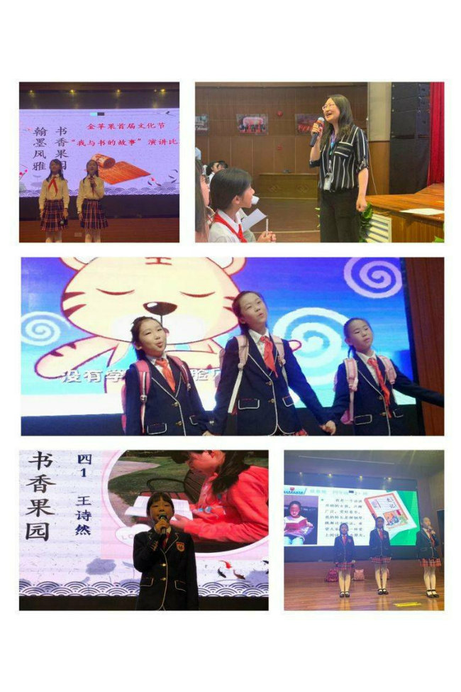 本届文化周语文日围绕“书香果园、翰墨文雅”为主题,开展了丰富多彩的活动,积极营造浓厚的读书氛围,让每位学生亲近书本,养成读好书、好读书的习惯。在阅读中与大师对话,塑造高尚心灵;与书为伴,与经典为友,与博览同行,开拓视野,从而享受读书的快乐、学习的快乐。