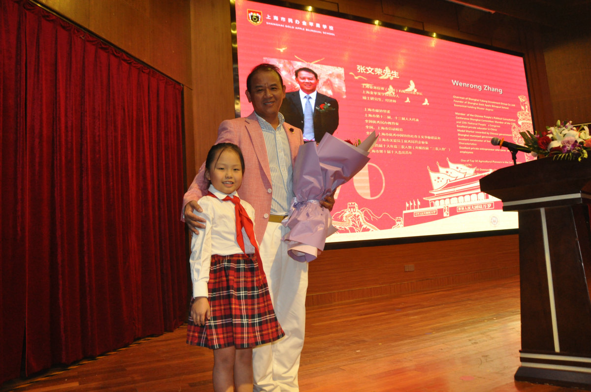 上海亚龙集团董事长、上海市民办金苹果学校创办人张文荣先生发言