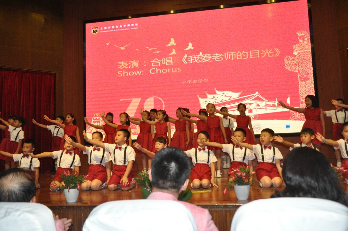 统一定制的服装格外衬托出节日的喜气,无论年龄长幼,美丽的金苹果教师在节里绽放,千言万语都汇成了一句话:“老师,您辛苦了!”