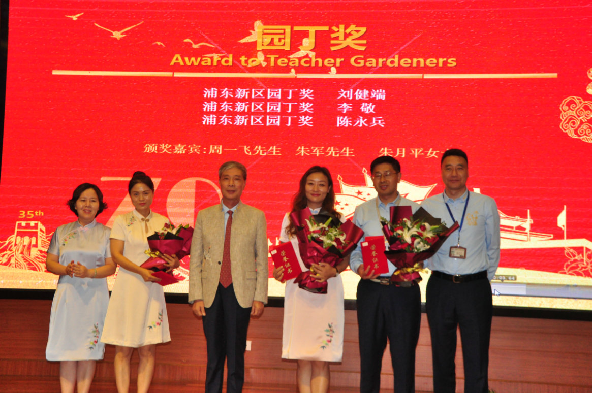 会上校领导为在本年度获得区园丁奖、优秀党员的教职工颁发了奖状、为在本年度指导学生参加市、区教育教学活动中取得优异成绩的教师颁发了奖状。