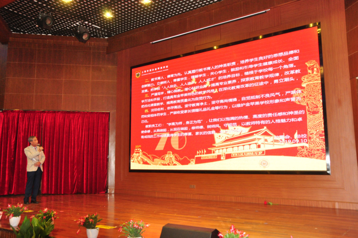 周一飞校长指出教师的思想政治素质和职业道德水平,直接关系到学生的健康成长,关系到国家的前途命运和民族的未来,倡导教师们做到以下几点: