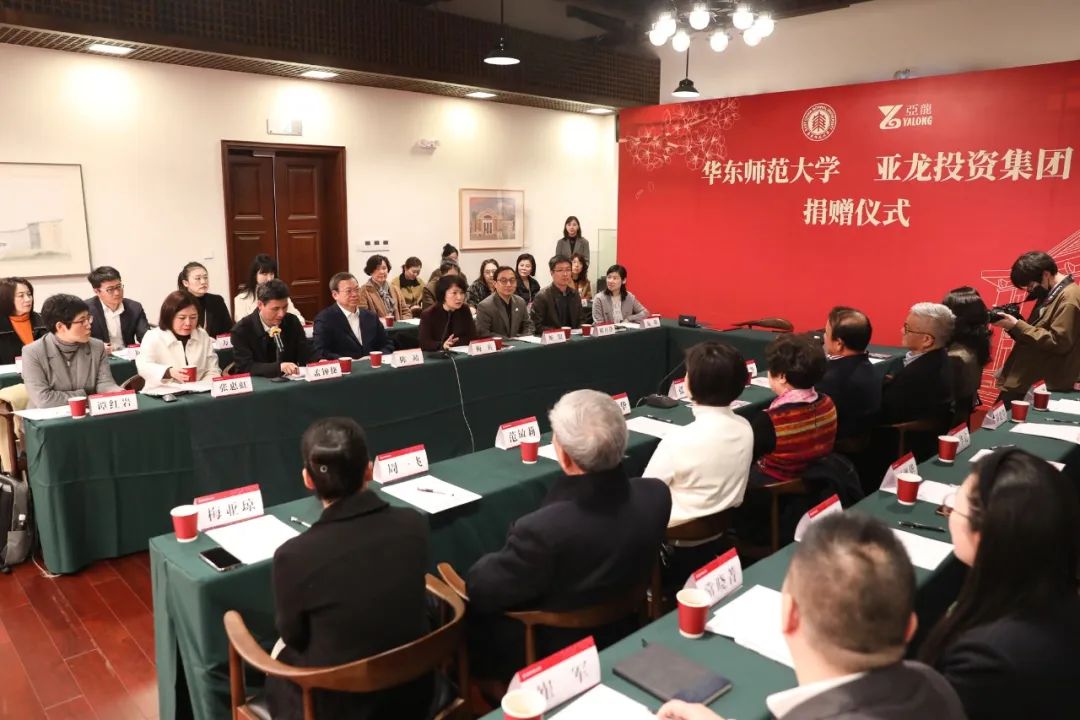 2023年3月21日下午,“亚龙专项基金”捐赠仪式在华东师范大学普陀校区校友之家举行。上海亚龙集团董事长、上海市民办金苹果学校创办人、华东师大校友张文荣先生携上海亚龙投资(集团)有限公司捐赠一千万元,设立“亚龙专项基金”,助力母校新一轮“双一流”建设,共同为建设教育强国贡献力量。