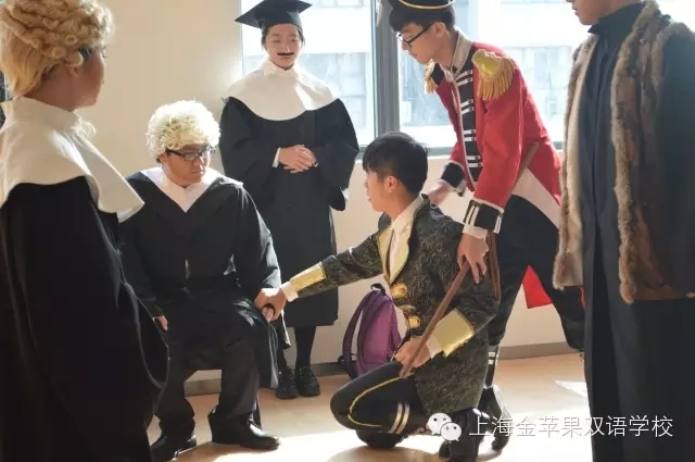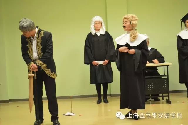 在主持人报幕声中,金苹果国际部的小演员们惊艳亮相,表演莎士比亚的经典喜剧《威尼斯商人》。国际部江国法校长也亲临现场,为同学们助阵加油,大家都深受鼓舞!