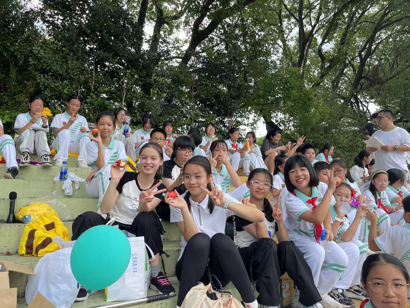 无论是场上运动员还是场边啦啦队都表现出良好的体育精神,和谐快乐共同进步,运动员为班级荣誉奋力拼搏挥汗如雨,啦啦队为班级运动健将呐喊助威声嘶力竭,无不展现出他们的大气责任和卓越,又一个难忘的青春美好记忆,吃着零食享受着课余难得的闲暇,人生何处不拼搏。当运动会散场时,每个同学都捡起身边的垃圾,搬走自己班级的物资和座椅,还保洁阿姨一个干净的操场,美好的回忆深深留在了心底。
