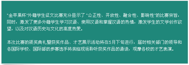 浦东新区开展外籍学生“金苹果杯”“我与汉语的故事”征文比赛