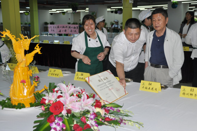 辛勤准备的大师傅们,看到自己的劳动得到捧赞,露出开心的笑容。
