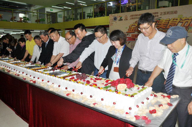 领导们切巨型蛋糕,宣布正式“开吃”!