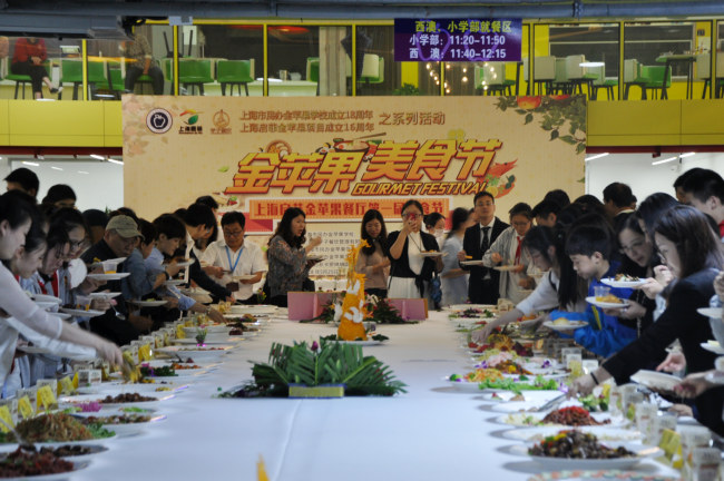 邀请到场的家长、老师、学生开始围绕精心准备的美食品尝。